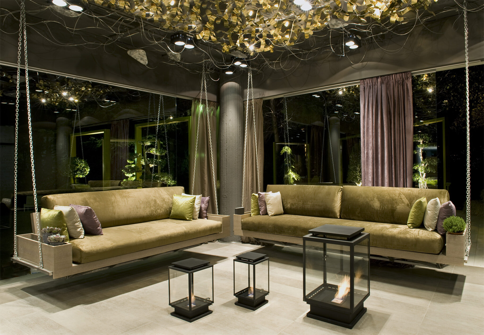 Sophistication in the suspended sofas as a swing. A vine in aged steel and brass illuminates and clings us. Freshness in curtains, heat. Textures in coatings. Sand-colored brushed wood, elegance and modernity for a new gastronomic experience abroad and above all, technology integrated into the best of functionalities.