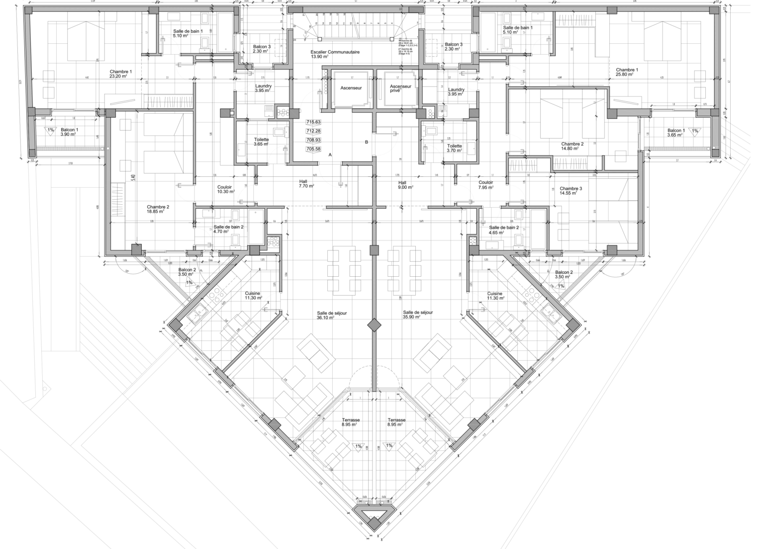 During the design process of the Penthouse in Cameroon, the visual language became more precise and adapted to the general spirit of the project. The clean lines are combined with traditional materials such as cement and limestone that are used in their purest form, without any ornament, and harmonize with the restrained and soft color palette.