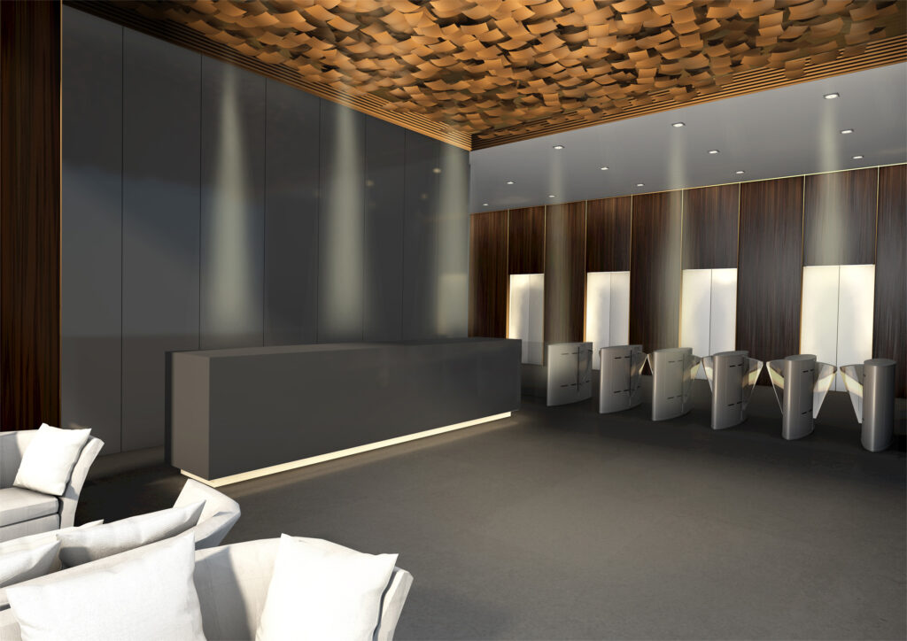 Sara Folch was the design team behind the main entrance and the office hall, which several companies, including the coworking brand WeWork, have rented. The building had over 11,000 square meters (118,400 sqft) of corporate offices available to rent.