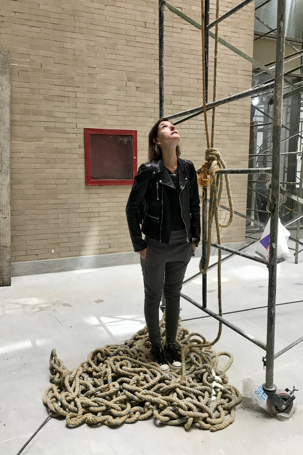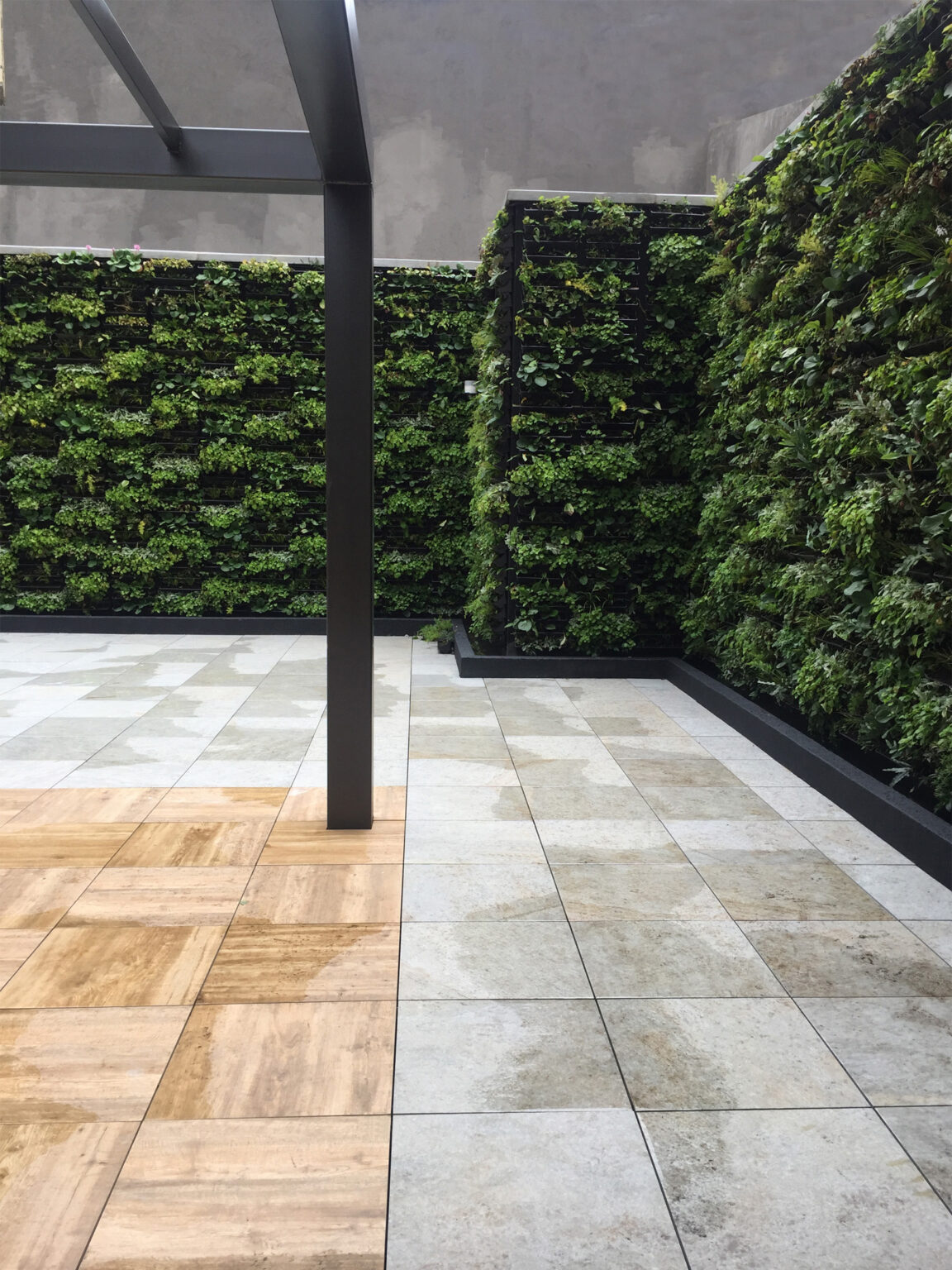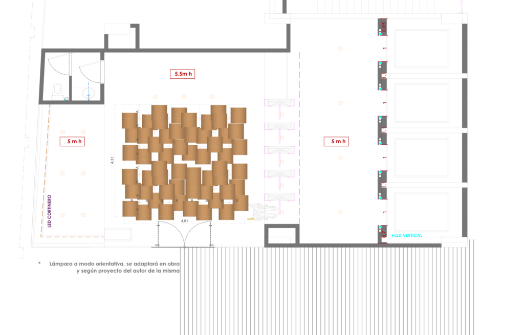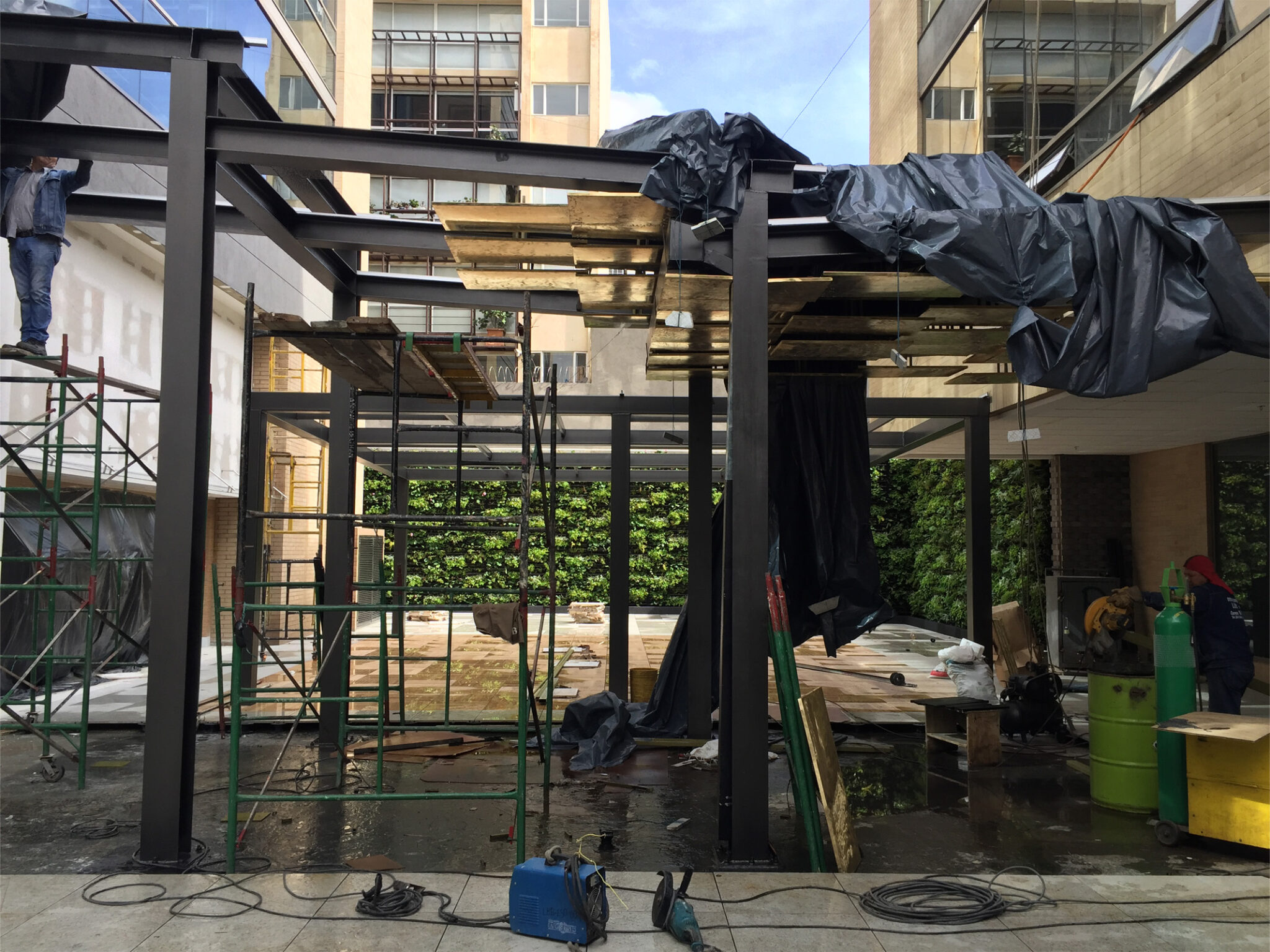 Sara Folch Design united the interior with the exterior, combining several pergolas that had a similar pattern to the large lamp installed on the hall’s ceiling.