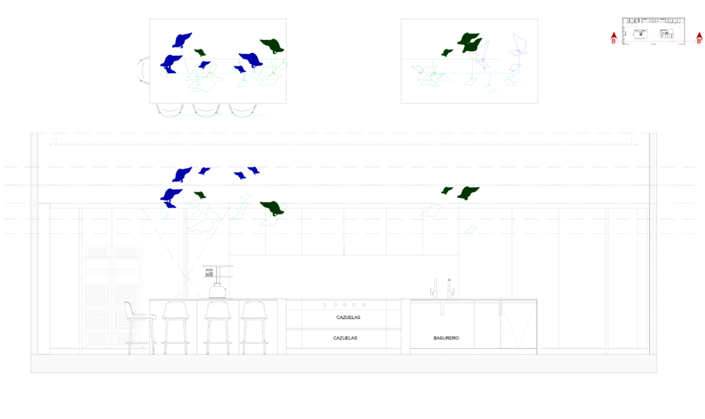 Nel·la Kitchen is a large area to welcome many friends. The idea behind Nel·la Kitchen was to have a room featuring two different places that became a 10-meter (30ft) large table, becoming another space, all thanks to technology and home automation.