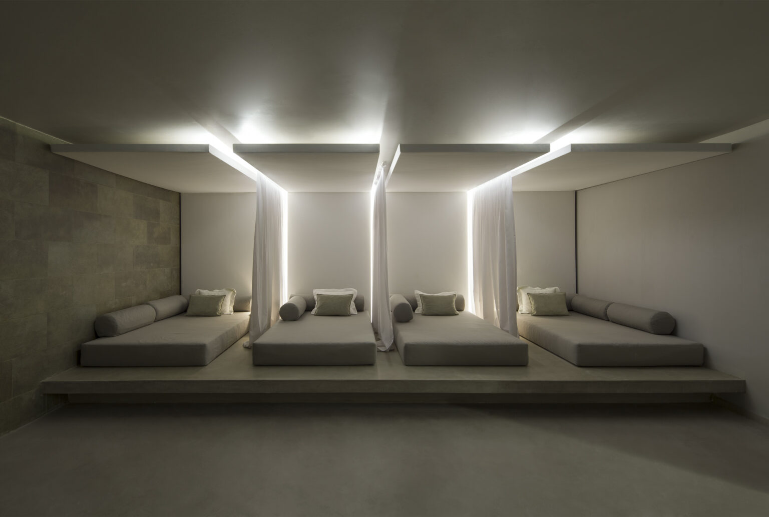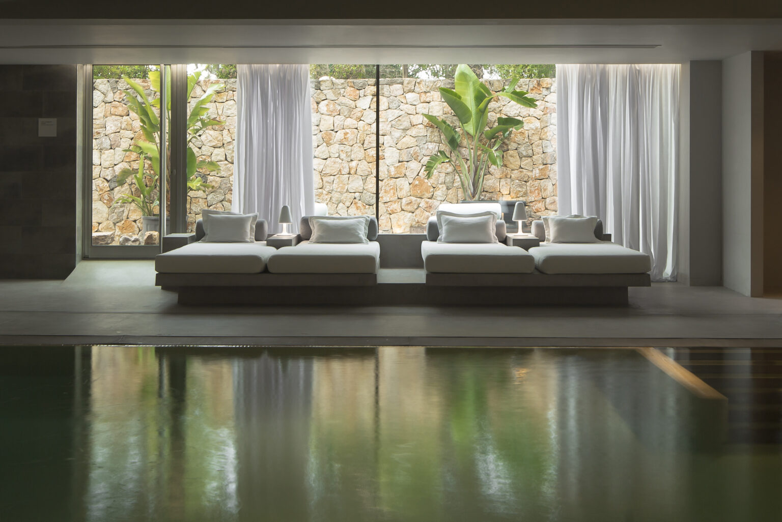 The Spa of the Aguas de Ibiza hotel by Clarins is inspired by nature, which plays a decisive role since the whole of its space stimulates physical, mental and spiritual harmony. It presents an authentic and very personal interpretation of luxury.